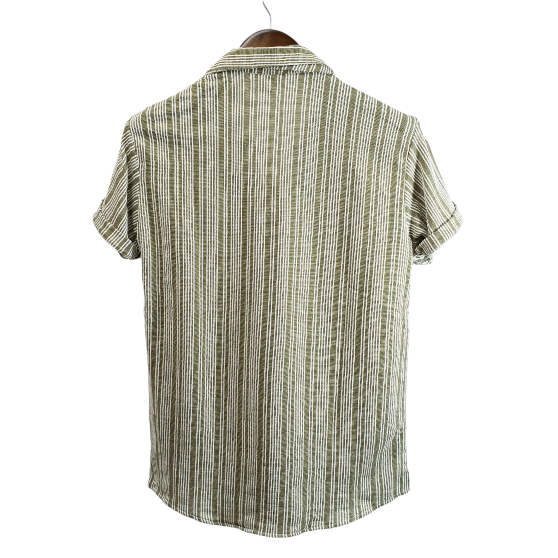 Men Complo Revere Collar Shirt features a textured pin stripe Cotton feel with button up enclosure.