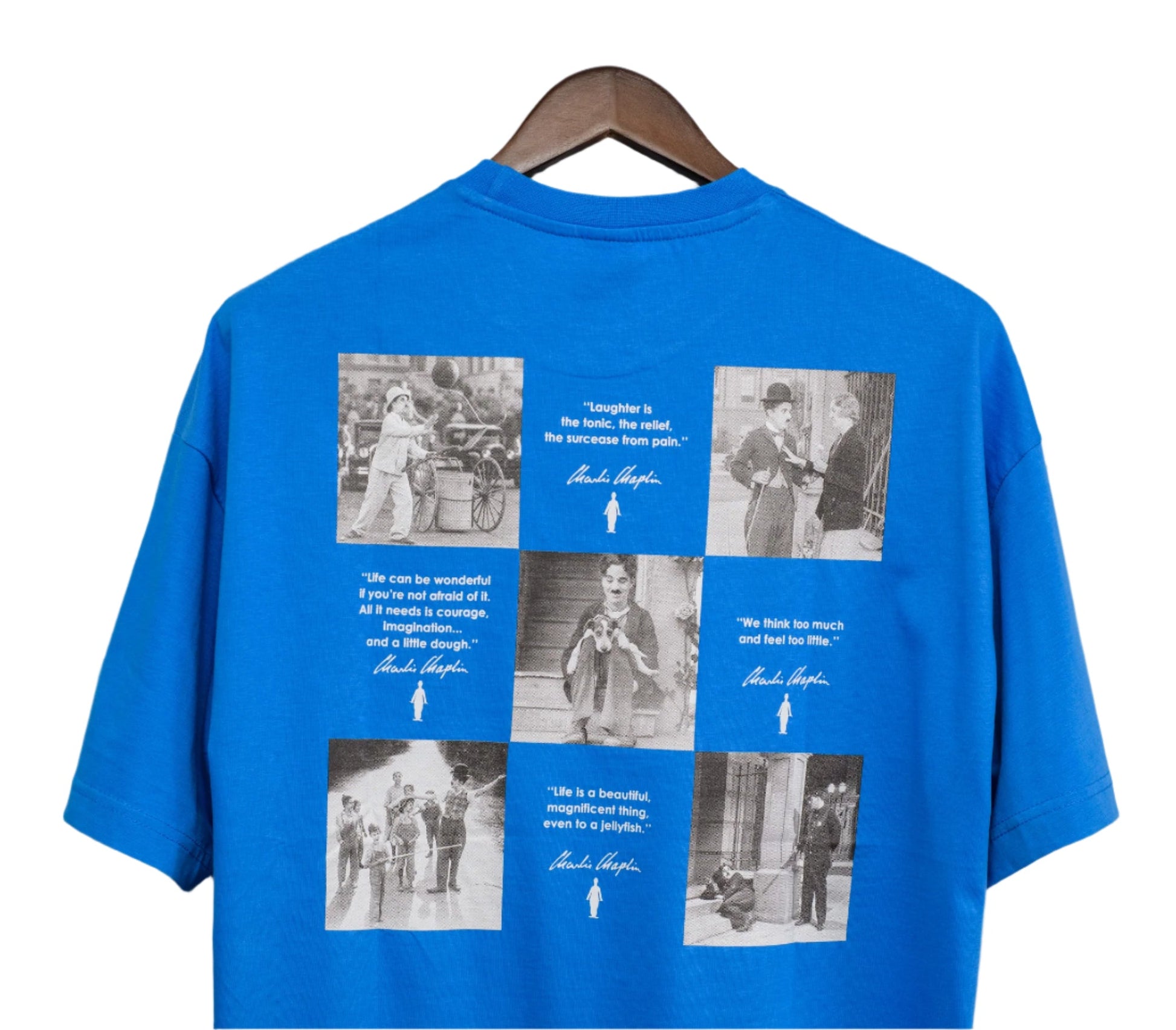 Make a bold statement with the Chaplin Oversized Tee. Featuring a minimalist front graphic and a unique collage design on the back, this tee combines comfort with artistic flair. Perfect for casual outings or layering for streetwear-inspired looks. Crafted from premium cotton for a soft and breathable fit.