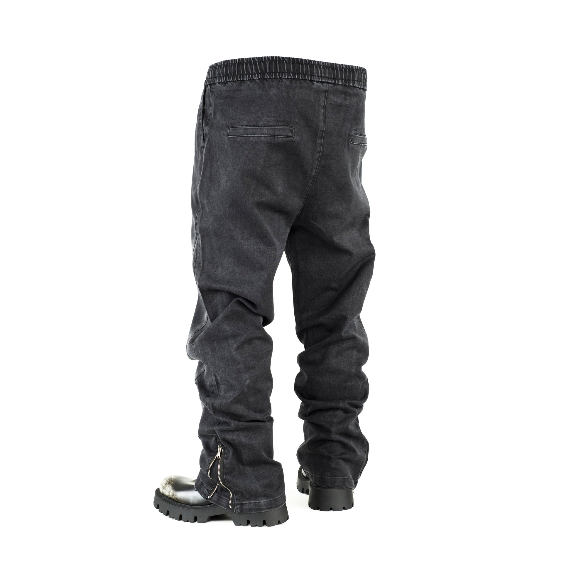 These dark washed denim joggers blend casual comfort with edgy streetwear style. Designed with an elastic waistband and adjustable drawstrings, these pants offer a relaxed fit that’s perfect for everyday wear. The zipper detailing at the ankles adds a unique touch, allowing for versatile styling options. Pair them with rugged boots or sneakers to complete your look. The subtle faded finish gives the pants a worn-in vibe, while the durable denim fabric ensures lasting wear. Ideal for those who appreciate both comfort and style, these joggers can easily transition from casual outings to more adventurous activities.